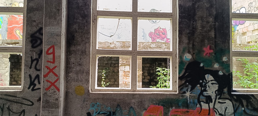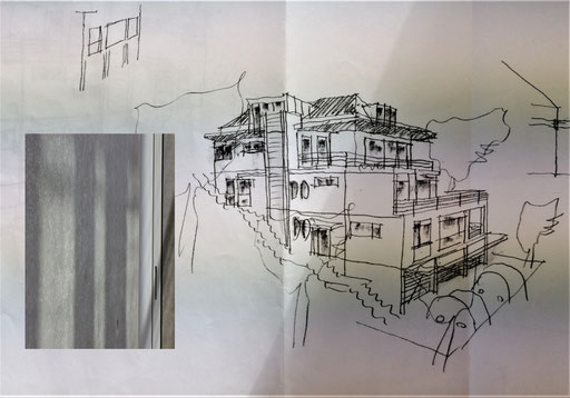abstrahierte schwindel der blicke durch gebäude / objekte